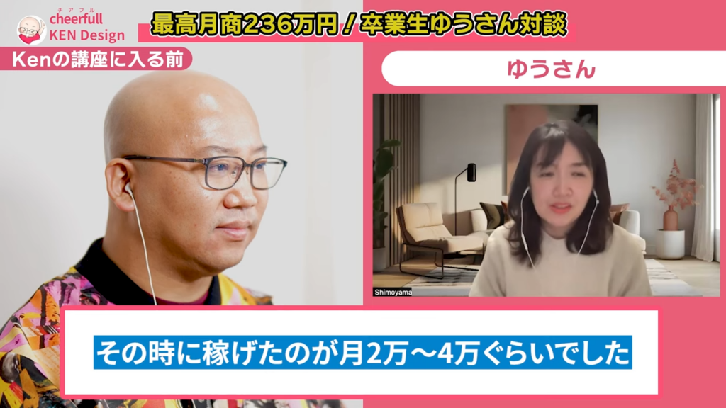 Ken: ゆうさんはもともとグラフィックデザイナーとしてベテランでしたが、受講前はどのくらい稼げていたのでしょうか?